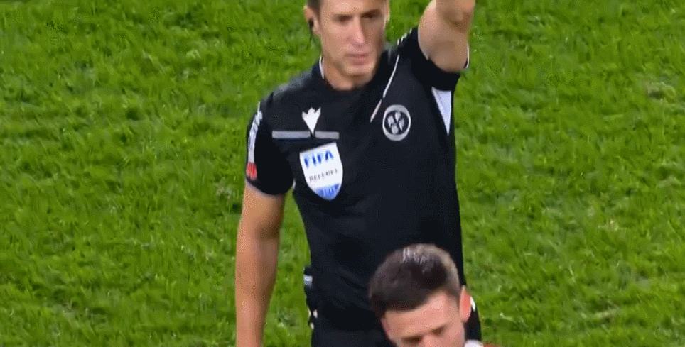 第40分钟,朗格莱再次放倒尤特格拉,主裁判格拉多向朗格莱出示第二张黄牌将其罚下。